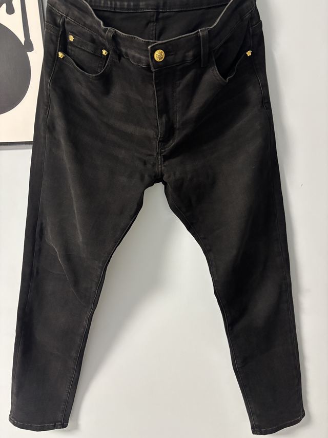 范思哲 100斤-125斤 高弹黑色牛仔裤 保证水洗不掉色