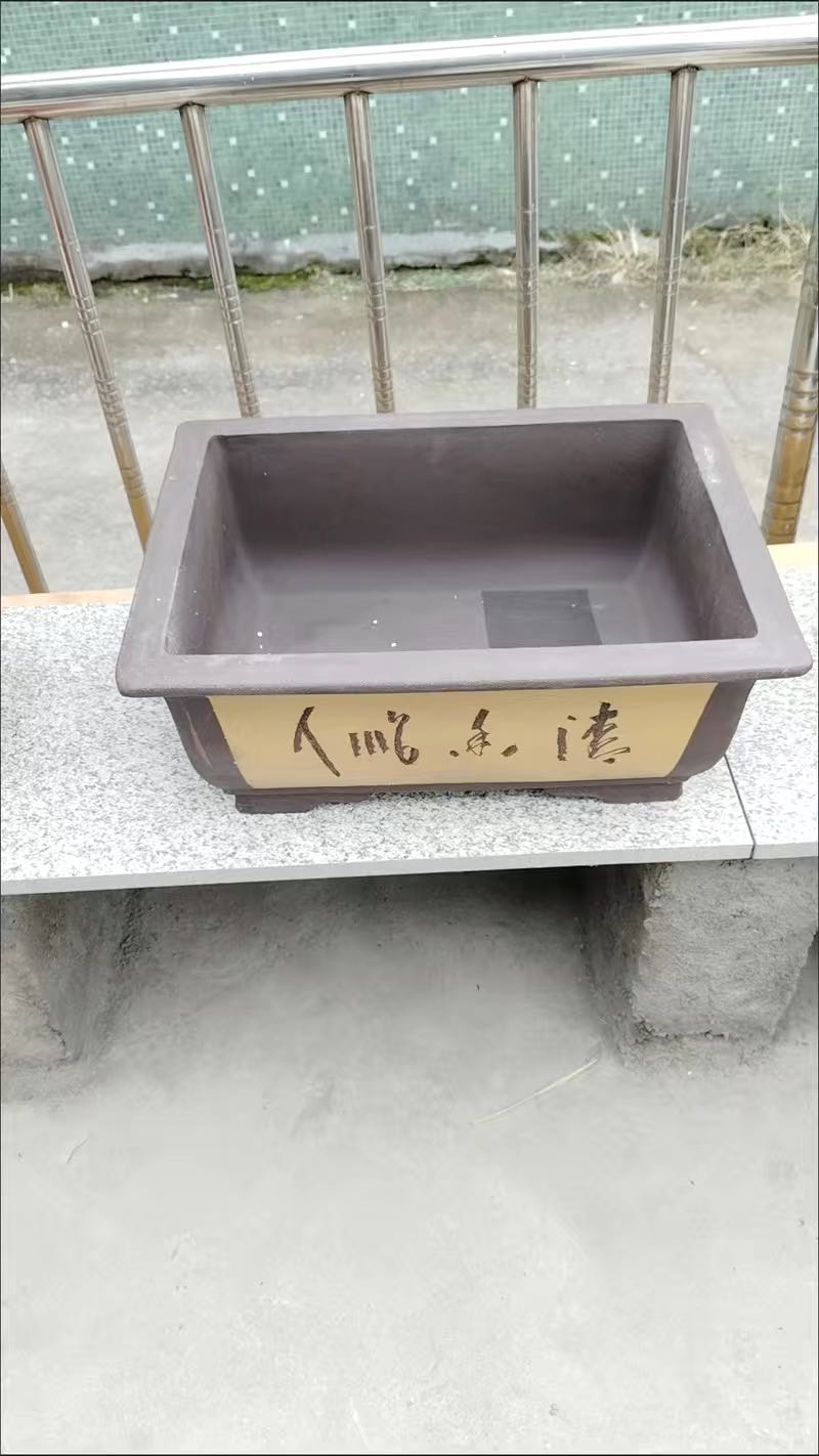 包邮全新紫砂花盆(一面字一面山水)